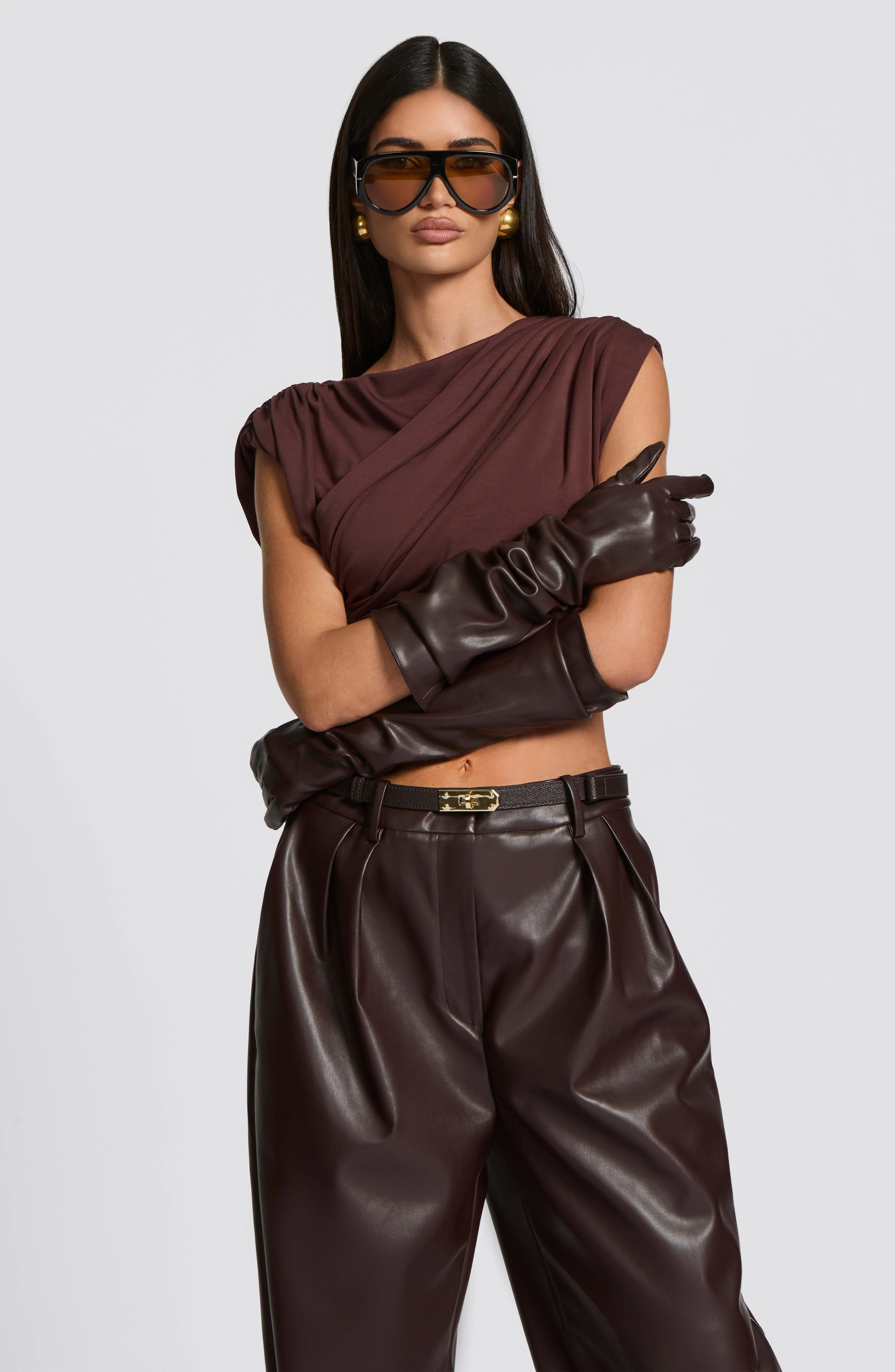 Elevate your style with the Frankie Gloves in rich plum brown faux leather, combining refined elegance with modern edge. Perfect for adding a sophisticated touch to any ensemble while keeping your hands comfortably covered.